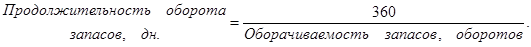 Аналогично рассчитываются оборачиваемость и продолжительность оборота сырья, материалов, топлива и готовой продукции хозяйствующего субъекта по состоянию на начало и конец периода. Период обращения запасов - это средний период времени, необходимое для превращения сырья в готовую продукцию и последующей продажи.