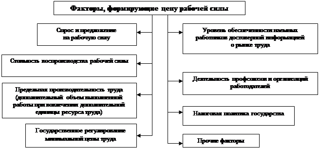 Рисунок 1 - Факторы, формирующие цену рабочей силы
