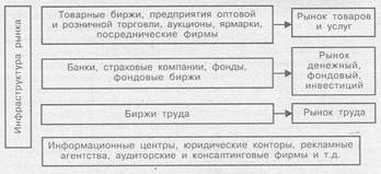 Инфраструктура рынка — это совокупность правовых форм, опосредствующих движение товаров и услуг, акты купли-продажи, или совокупность институтов, систем, служб, предприятий, обслуживающих рынок и выполняющих определенные функции по обеспечению нормального режима его функционирования[4] .