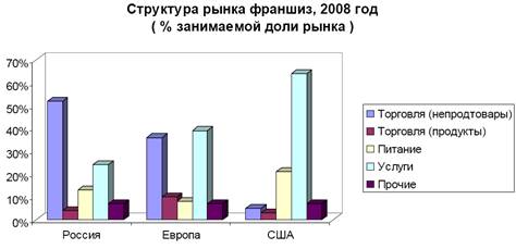 Структура рынка франшиз в России в 2008 г. представлена на рис.1