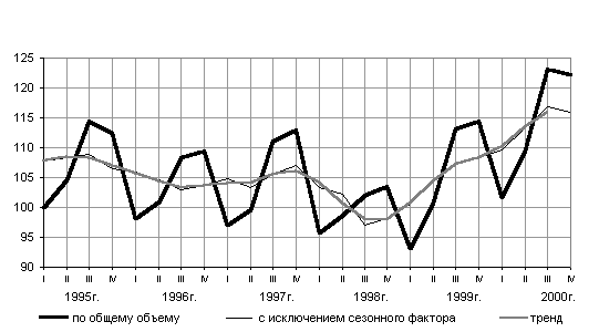 (с учетом сезонного сглаживания, в % к I кварталу).