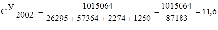 В 2002 г. прослеживается дальнейшее снижение темпов роста численности всего персонала, при этом наблюдается рост производительности труда, о чем говорит индекс опережения равный 1,23%. Большой разрыв между темпами роста производительности труда и темпами роста заработной платы в 2002 году обеспечило предприятию снижение себестоимости на 1,12%, что является положительным результатом.