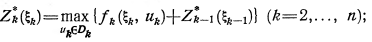 известна максимальная прибыль, полученная за n—kшагов с (k+1)-гoпо n-й включительно. Поэтому основные рекуррентные соотношения можно записать в виде