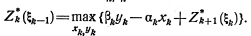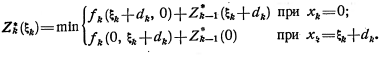 Пусть Zk *{t)—условные минимальные затраты за n—k+1 шагов с k-гoпо n-й включительно, если к началу k-гoшага возраст оборудования составлял tлет, при условии, что был выбран оптимальный режим эксплуатации.