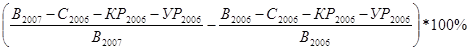 За период 2005-2007 год наблюдается недостаточность собственных источников финансирования. При этом никак не изменилась абсолютная величина уставного капитала. У организации нет в распоряжении нераспределенной прибыли как собственного источника финансирования, а наоборот, имеет непокрытый убыток, который к концу анализируемого периода увеличился еще на 123,71 %.