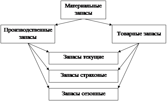 Производственные и товарные запасы подразделяются на текущие, страховые и сезонные [3, с. 188].