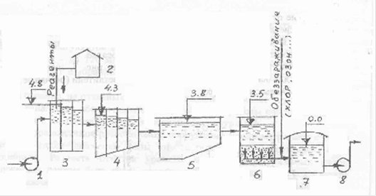 Схема очистных сооружений включает в себя следующие процессы: