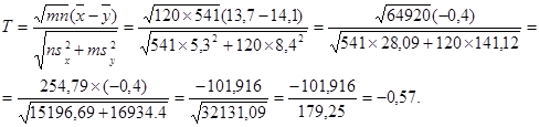 Результаты расчетов (суммирование значений по седьмому столбцу табл.2) показывают, что значение статистики