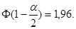 =0,05 и n = 5 для стандартного нормального распределения F имеем d(