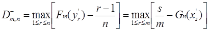 - распределение G(x), оно "существенно сдвинуто вправо" относительно F(x), например, G(x)=F(x - A), где A достаточно велико. Если альтернативная гипотеза справедлива, то при
