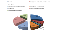 Анализируя структуру фонда оплаты труда, можно отметить, что доля выплат по должностным окладам в отчетном периоде (2008 год) составляет основную часть (28,1%) и большую долю занимают стимулирующие выплаты (25,1%), что составляет наибольший удельный вес от фонда оплаты труда.
