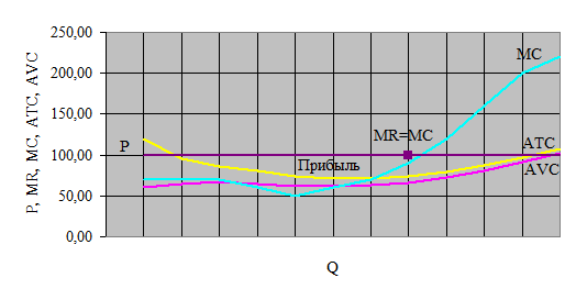 Рис. 7 Положение фирмы, максимизирующей прибыль в краткосрочном периоде