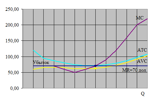 Рис. 8 Положение фирмы, минимизирующей убытки в краткосрочном периоде