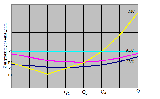 Рис. 9. Кривая предложения и издержки фирмы в краткосрочном периоде.