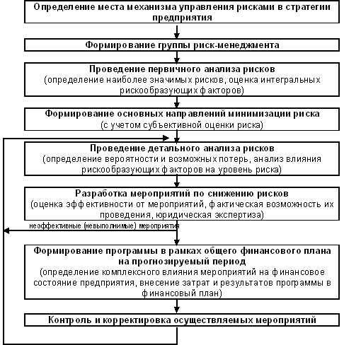 Развитие науки управления рисками в значительной степени рассматривается с позиции рисков финансовых институтов в условиях относительно стабильной экономической конъюнктуры. Необходимость рассмотрения рисков производственных предприятий в нестабильных политических, экономических и социальных условиях требует корректировки существующих принципов управления рисками и дополнительного обоснования эффективности используемых методов анализа рисков. Управление риском можно охарактеризовать как совокупность методов, приемов и мероприятий, позволяющих в определенной степени прогнозировать наступление рисковых событий и принимать меры к исключению или снижению отрицательных последствий наступления таких событий (приложение 2).