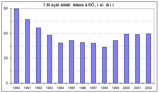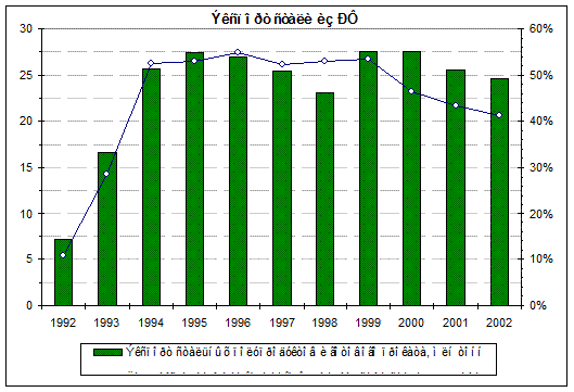 Таким образом, внутренний рынок на настоящий момент является основным источником роста для российских сталелитейных компаний. Внутреннее потребление стальной продукции в 2002 году составило около 32 млн. тонн. Стимулом к началу восстановления внутреннего потребления стали явилась девальвация российской национальной валюты в 1998 году, которая вкупе с восстановлением относительно высокого уровня мировых цен на нефть и нефтепродукты определила резкое увеличение конкурентоспособности продукции экспортных отраслей (в первую очередь нефтегазовой) на международных рынках и рентабельности их операций, и соответственно стимулировала экономический рост в стране в целом и рост важнейших металлопотребляющих отраслей, в частности.