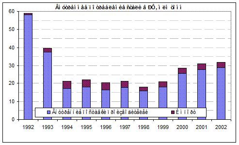 По состоянию на 1 января 2002 г. на большинстве предприятий акции первой эмиссии размещены полностью. В распоряжении Российского фонда федерального имущества и его территориальных органов остались акции ряда акционерных обществ металлургического комплекса, не превышающие 10-20%, и небольшое количество более крупных пакетов.