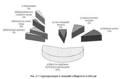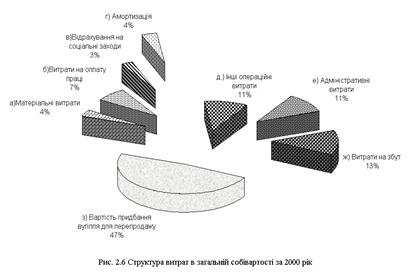 Оскільки розрахункова імовірність банкрутства підприємства по Альтману мала, то хронічна збитковість підприємства, таким чином, є результатом підвищеної собівартості, тобто завищених витрат оптоворознічної торгівлі.