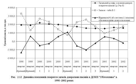 поточна термінова ліквідність (покриття запозичених засобів) перекриває норматив (>1,0) у 1,52,5 рази через незастосування фінансових важелів довгострокових і короткострокових кредитів, але абсолютна ліквідність не відповідає нормі (0,20,3), а фактично в декілька разів нижче, тобто в підприємства хронічна нестача оперативних коштів. Причина за аналізом фінансової стійкості – невідповідність запасів і коштів їхнього покриття (проблеми з реалізацією готової продукції) та високий рівень дебіторської заборгованості за авансом відпущене паливо.