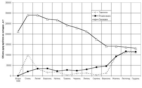 На основі отриманих статистичних даних за 1999 –2002 роки проведено моделювання впливу реструктуризації складів підприємства на зниження загальної собівартості його діяльності та розроблені рекомендації по оптимальним шляхам санації за рахунок об’єднання структури складів по області.