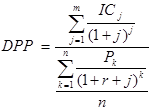 Якщо проект припускає не разову інвестицію, а послідовне інвестування фінансових ресурсів протягом m років, то формула для розрахунку ДСО(DPP) модифікується в такий спосіб (з врахуванням впливу інфляції як на дисконтовані потоки інвестиції, так і на сгенеровані потоки прибутку інвестиційного проекту):