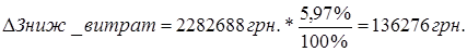 Згідно з даними табл. 3.5 при об'єднанні складів сумарні витрати зменшаться на 5,97 %, тобто за даними 2001 року (табл. Г.1 Додатку Г) на щорічну суму не менше:
