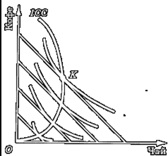 На рис. 3 представлена лінія доход-споживання деякого споживача для випадку чай-кава. Легко помітити, що ця лінія на ділянці вище точки К повертає в напрямку зменшення споживання чаю (на відміну від ліній дохід-споживання для їжі та одягу, зображеної на рис. 2). Такий поворот лінії дохід-споживання на рис. 3 означає, що при рівні доходу споживача, що перевищує рівень, для якого оптимальною комбінацією кави та чаю є набір K, чай стає нижчим благом. На основі рис. 3 можна побудувати криву Енгеля для витрат на чай (рис. 4).