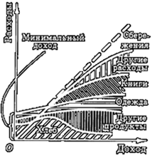3) витрати на дорогі предмети підвищуються в більшому ступені, чим доход. При росту доходу споживача споживання їм вторинних благ зростає в більшому ступені, чим споживання благ першої необхідності;