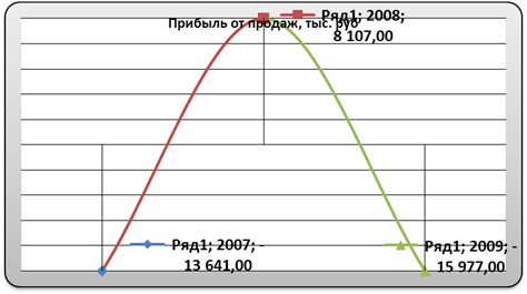 Убыток от продаж, наоборот, хотя и незначительно, но все же вырос и составил в 2009 году -15977 тыс. рублей против -13641 тыс. рублей в 2007 году. В 2008 году была получена прибыль от продаж в размере 8107 тыс. рублей.