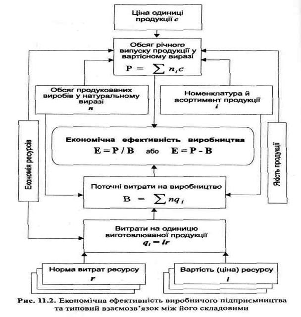 Рис. 1. Схема формування результатів і ефективності виробництва (продуктивності виробничо-економічної системи).