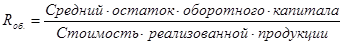 Простейшим показателем данного вида является коэффициент оборачиваемости оборотного капитала, равный частному от деления стоимости реализованной продукции (выручки от реализации) за данный период на средний остаток оборотного капитала за тот же период.