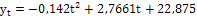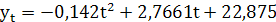2. З обчислень, за рівнянням параболи другого порядку, можна зробити висновок, що початкова швидкість зростання урожайності становить 2.7661 ц, а середнє уповільнення зміни щорічних рівнів урожайності становить -0,142 ц.