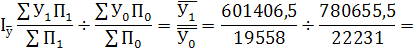 Для визначення впливу урожайності на валовий збір різницю між урожайністю у поточному та базовому роках множать на посівну площу у поточному році: (У1 - У0 )·П1 .