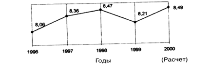 Первый пример некорректного графика изображает динамику потребления электроэнергии в Украине за 1990-1995 гг. от общей выработки в % (рис. 2.1).