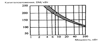 Рис. 2.7. Удельные капиталовложения в котельную, работающую на газе или жидком топливе (1989 г.) (диаграмма с логарифмической шкалой)