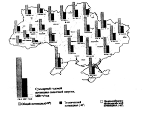 Рис. 2.13. Потенциал солнечной энергии на территории Украины (картодиаграмма) [8] теплоэлектростанции фирмы ABZ (диаграмма Сэкэй) [2, с. 39, рис.2]