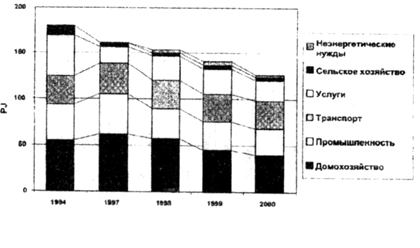Рис. 2.18. Структура потребления энергоресурсов по отраслям в Латвии (диаграмма сравнения) [4, с.30, рис.3]