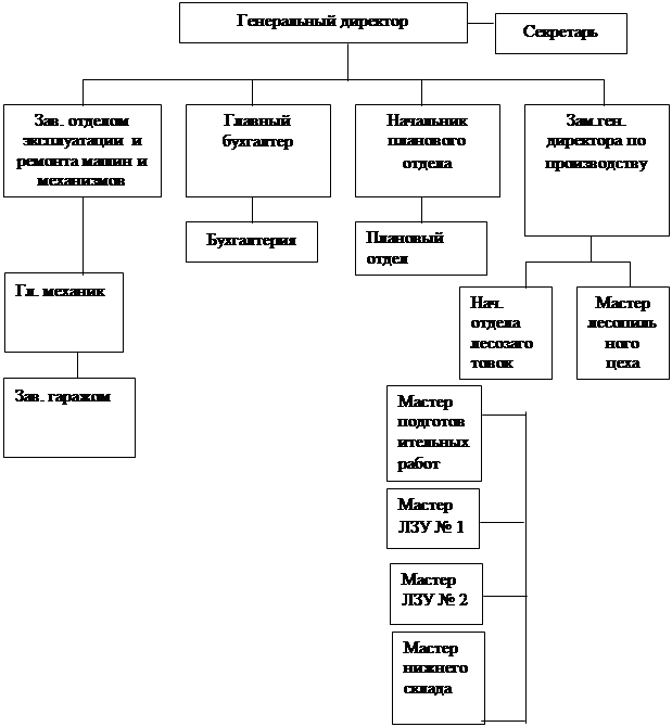 Лесопильный цех специализируется на производстве пиломатериалов. Готовая продукция лесопильного цеха, реализуется на внутреннем рынке. Организационная схема предприятия представлена на схеме.
