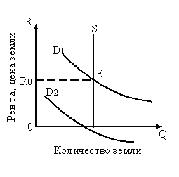 D2 – спрос на землю в условиях, когда земля не приносит ренту;