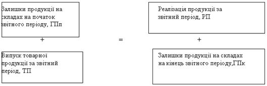 ) – це продукція, яка відвантажується споживачеві і за яку надійшли кошти на розрахунковий рахунок підприємства – постачальника або мають надійти у зазначений термін. Обсяг реалізованої продукції визначається за формулою: ![]()