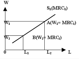 В экономическом смысле кривая предложения труда SL - кривая предельных издержек труда MRCL ( см. Рис.2).