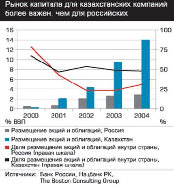 Диаграмма рынка капитала для Казахстана и России (оценка).