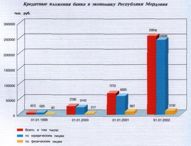 Анализ управления активными операциями показал, что на кредиты приходится большая доля в структуре активов (57,3% на начало 2002 года). В течение анализируемого периода наблюдается четкая тенденция увеличения доли кредитов, предоставленных отделением (с 36,5% на начало 1997 года до 57,3% на 1.01.02.) Это характеризует деятельность отделения с положительной стороны, так как предоставление кредитов–самая доходная статья активов. Однако операции по кредитованию являются и самыми рискованными, что может привести к ухудшению финансового состояния банка, если не соблюдать разумного соотношения между доходностью и рискованностью.