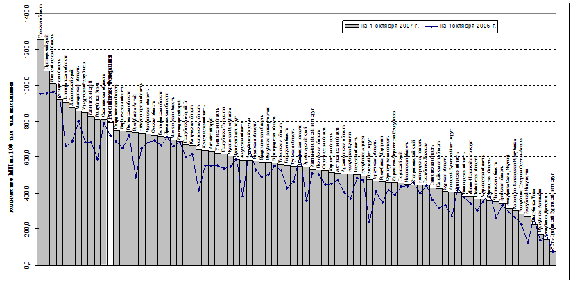 числа зарегистрированных малых предприятий на 100 тыс. жителей за период с 1 октября 2006 г. по 1 октября 2007 г.
