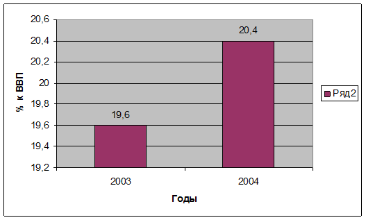 Эту же тенденцию можно проследить при анализе темпов роста и прироста. Необходимо сделать одно замечание: по каждому из этих показателей наблюдается снижение значений в 2004 году. Особое же внимание следует уделить абсолютным значениям 1% прироста. Минимальный темп прироста был в 2003 г. (128,44%), ему соответствовало минимальное абсолютное значение 1% прироста (11,32 млрд.. руб.). Аналогично, в 2004 г. темп прироста был максимальным (202,88 %), ему соответствовало максимальное абсолютное значение 1% прироста (25,86 млрд.. руб).