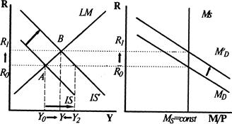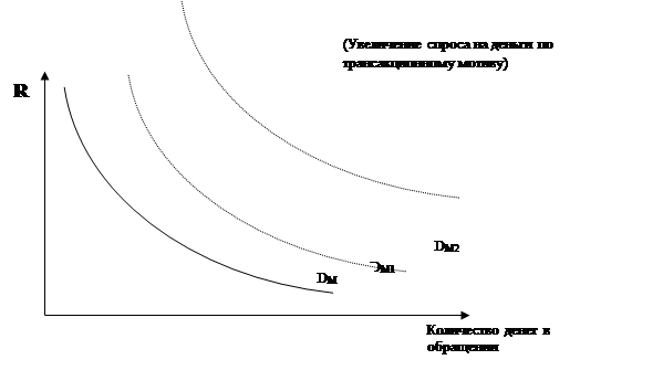 ), так как в экономике совершается большее количество сделок. Повышение спроса на деньги при их фиксированном предложении вызывает рост процентной ставки R.