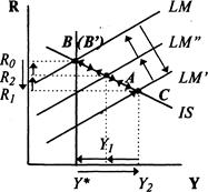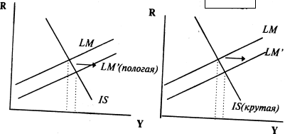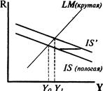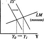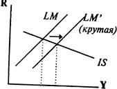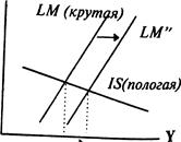 что существенно увеличивает Y. Угол наклона кривой LM в данном случае имеет второстепенное значение.