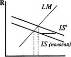 к динамике процентных ставок. Графически это соответствует относительно пологой IS (см.рис.9.13). В этом случае даже незначительное снижение R