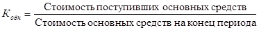 - коэффициент обновления, характеризующий долю новых фондов в их общей стоимости на конец года