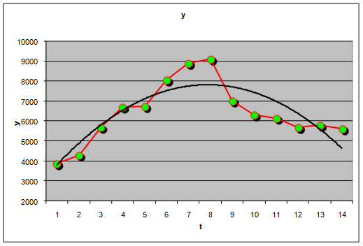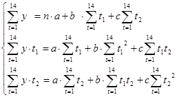 2007 г. y = 5936,06 + 64,8418*15 – 0,01304*226 = 6970